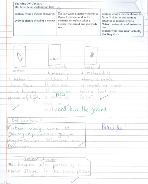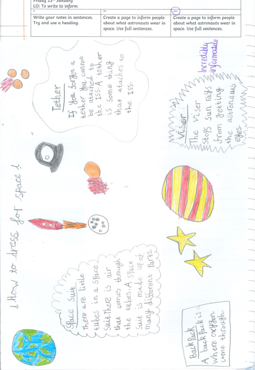 All of the teachers in class 2 have been blown away by their progress in their writing. This term, they have been inspired by space and have used 2 different texts to support their writing. The Man on the Moon and Look Up! The children have been exploring writing for different purposes; they have made fact files about space, explanation texts about meteor showers, character descriptions, diary entries and even biographies! An incredibly busy time and plenty of fantastic work to show off at the next stay and share session and their upcoming class assembly.