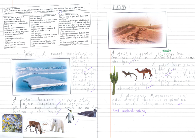 Class 2 have been virtually exploring the hottest and coldest parts of our planet and investigating what it means for something to be a ‘desert’. In both Science and Geography, they have explored what these places are like, what makes them trickier habitats and how both flora and fauna have developed to survive there. They then took a closer look into both the human and physical features of Greenland and Singapore and made some comparisons, considering what it might be like to live in one of those places. This was also supported by a fantastic forest school session where the children investigated the flora and fauna of their local area and even had a go at creating some of their own microhabitats for these.