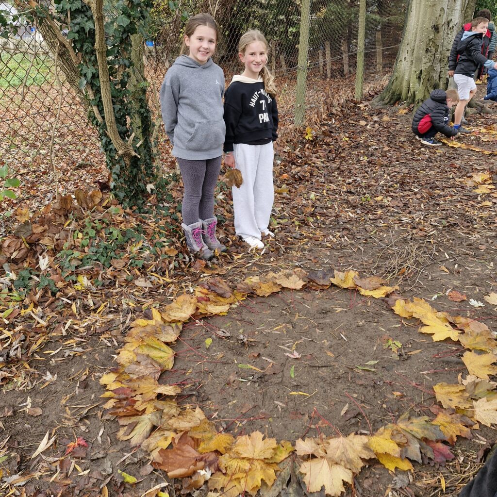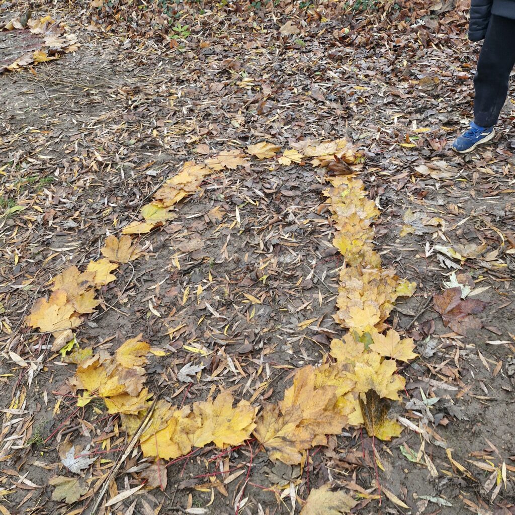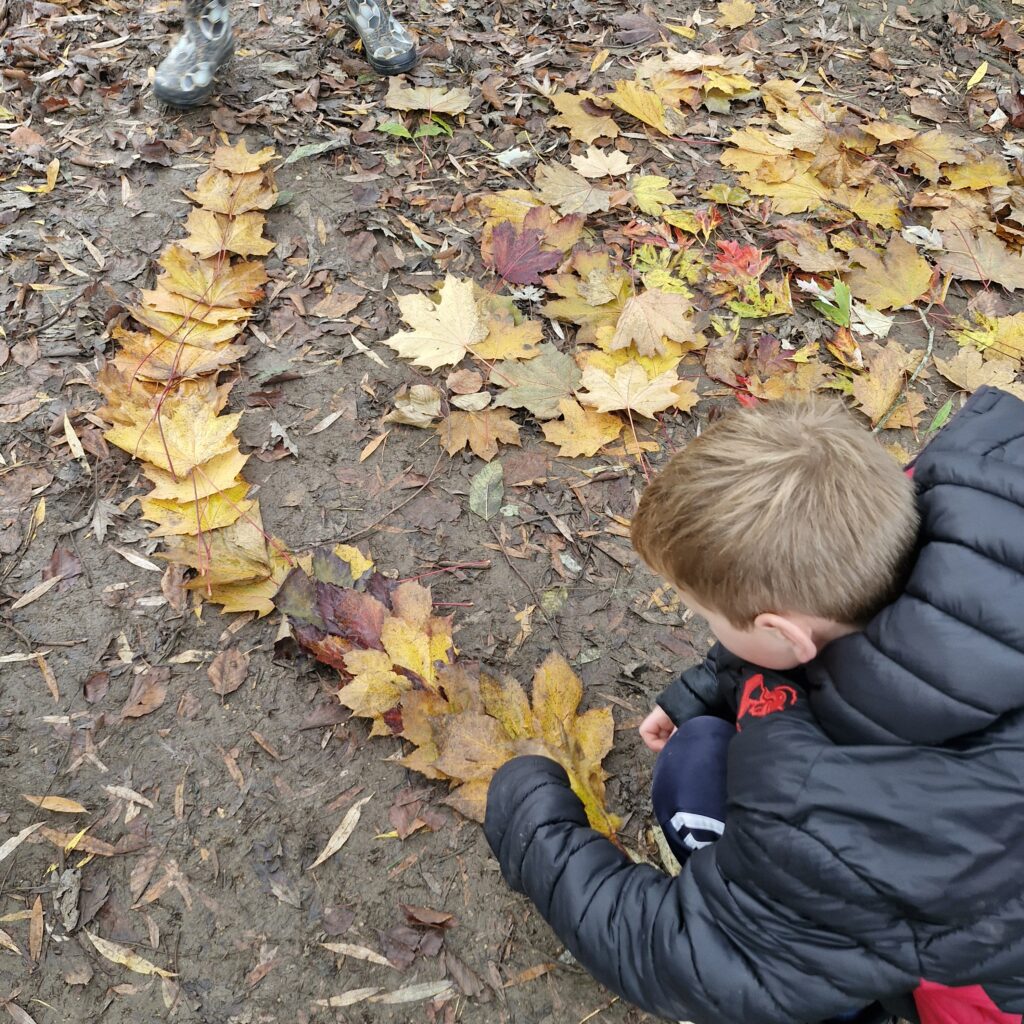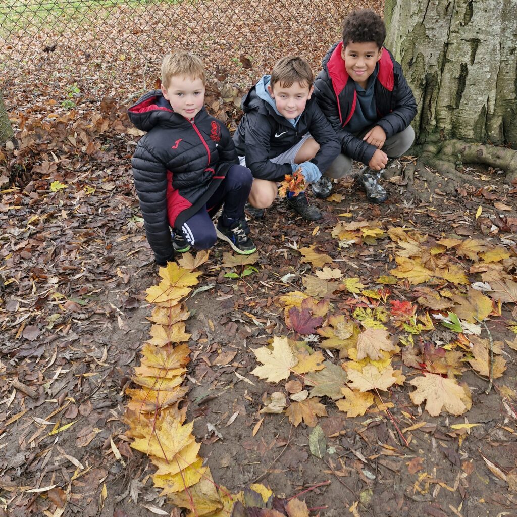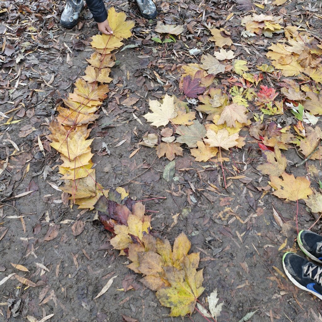 The children enjoyed collecting and arranging the colourful leaves to create temporary pieces of art.