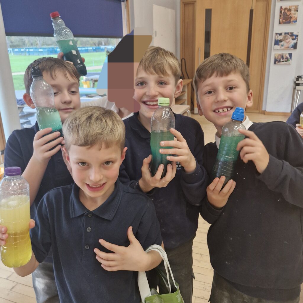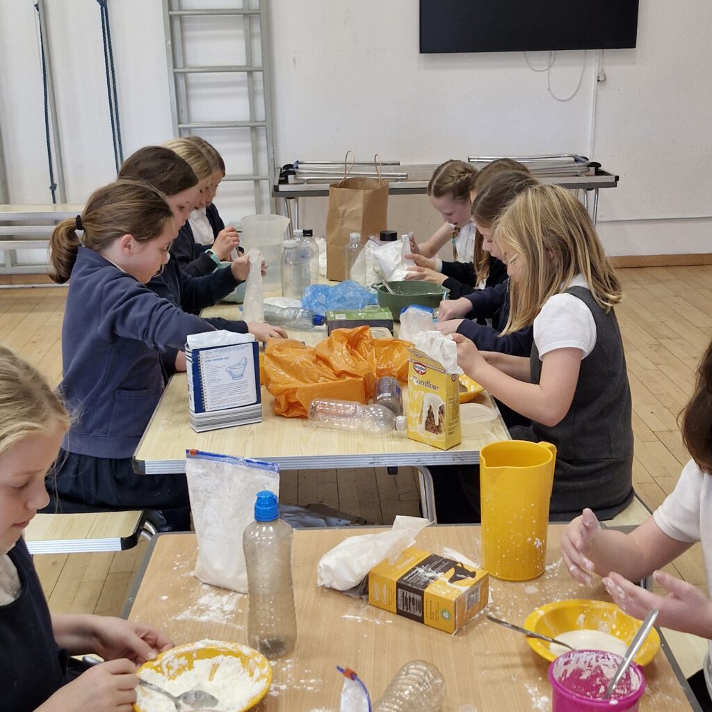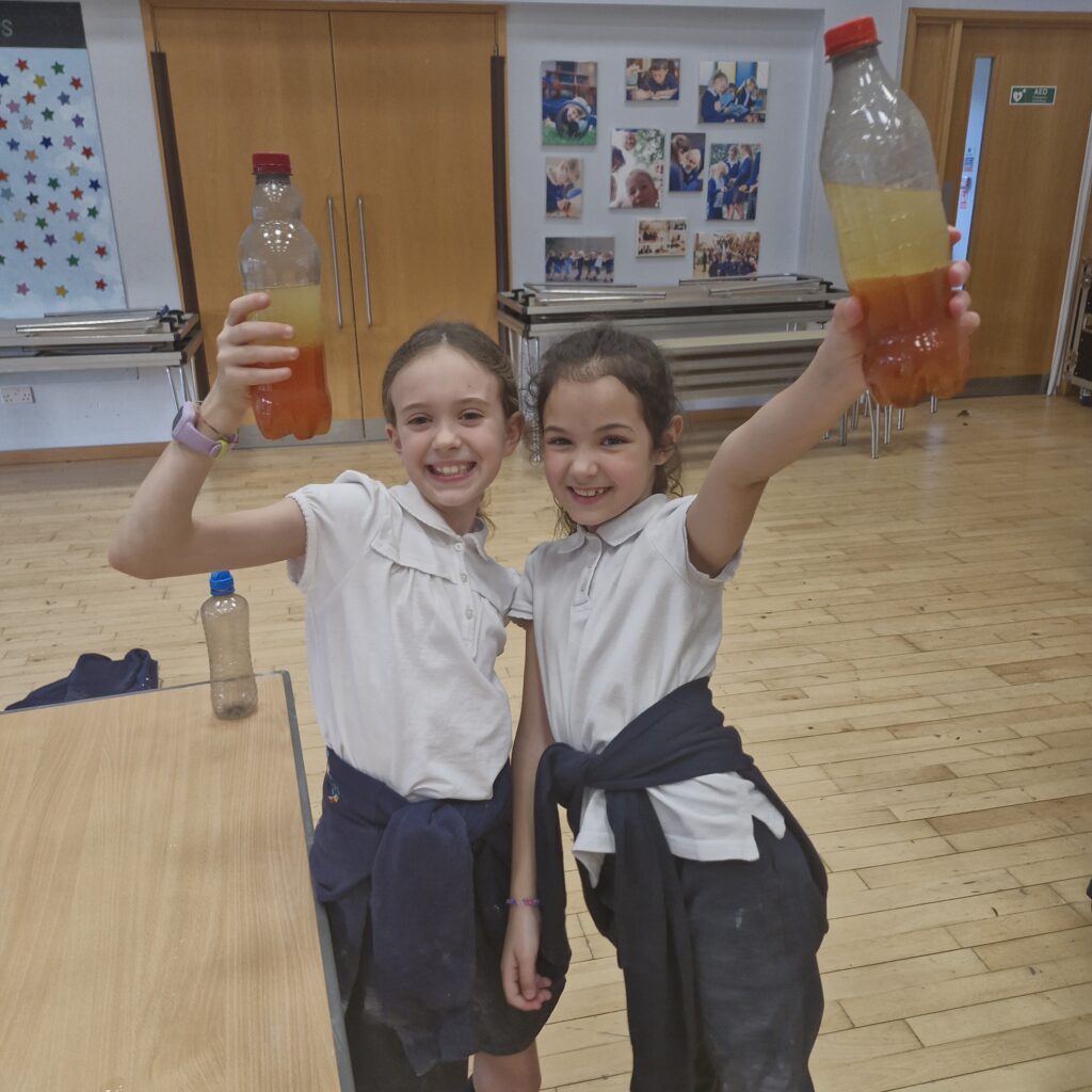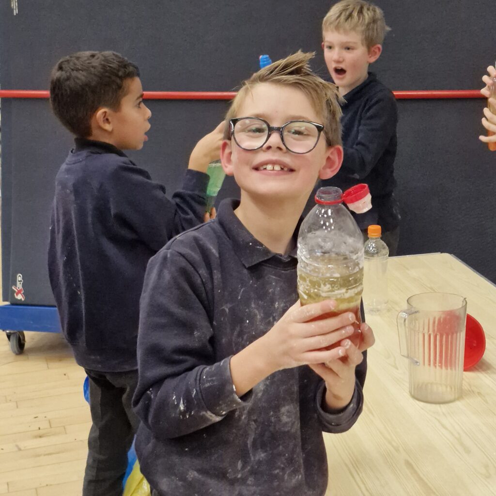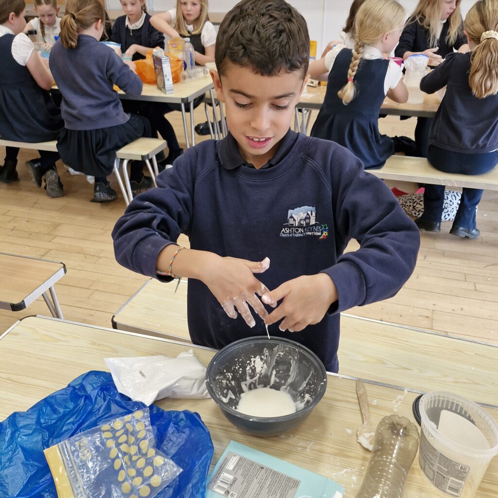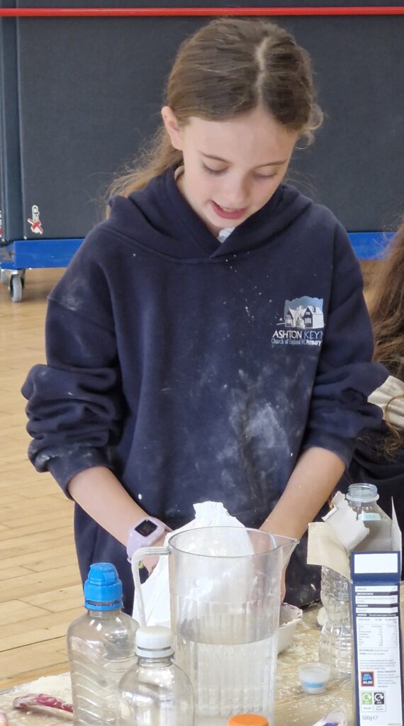 The children have been learning about solids, liquids and gases and their properties. In this practical session they made non-Newtonian fluid (better known as oobleck) and noticed how it behaved like both a solid and a liquid depending on when force was applied. They also made lava lamps and noticed how the bubbles of gas carried some of the coloured water with them.