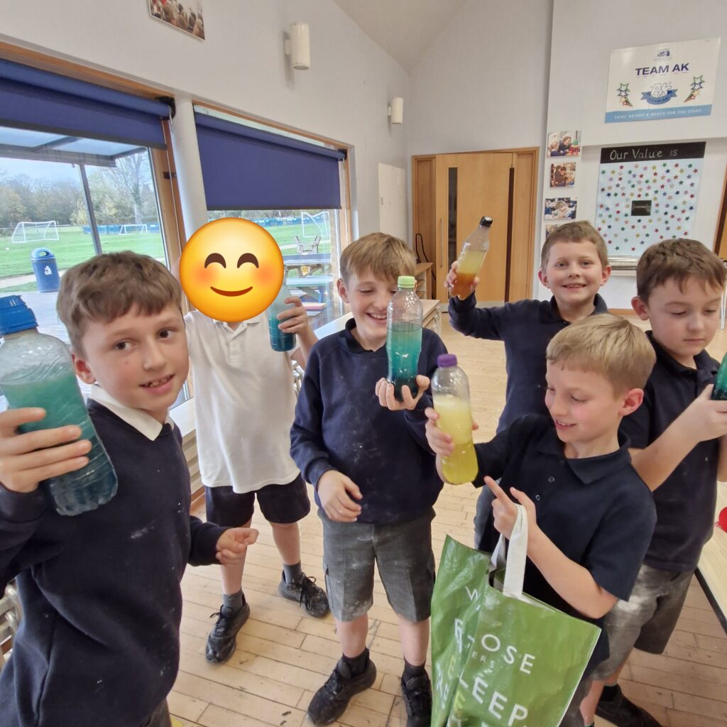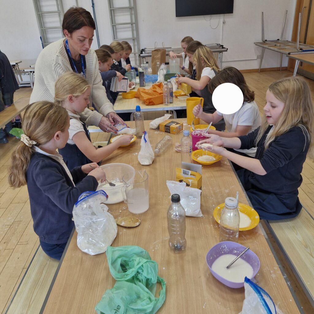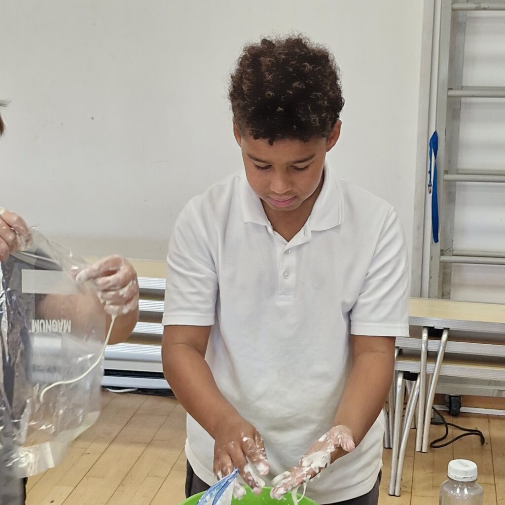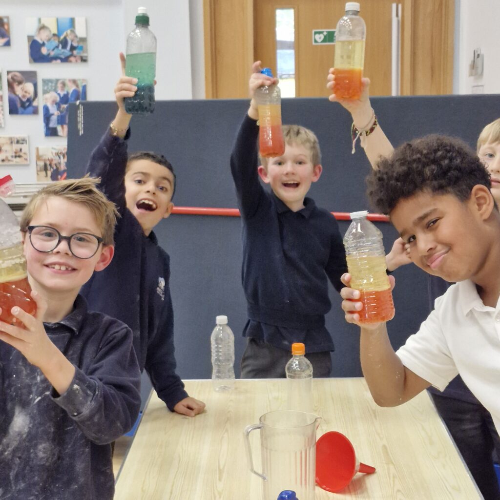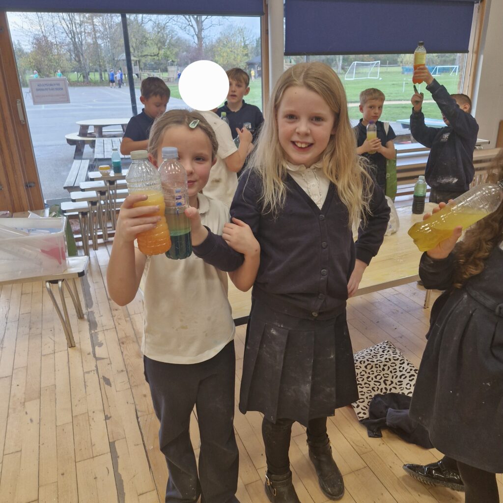 The children have been learning about solids, liquids and gases and their properties. In this practical session they made non-Newtonian fluid (better known as oobleck) and noticed how it behaved like both a solid and a liquid depending on when force was applied. They also made lava lamps and noticed how the bubbles of gas carried some of the coloured water with them.