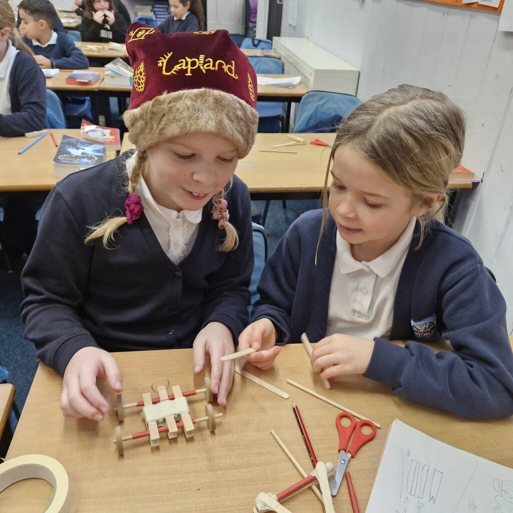 We had a very enjoyable few days of DT where we were exploring mechanics and producing sling shot cars! The children designed, made and evaluated their designs considering how to make their car more aerodynamic.