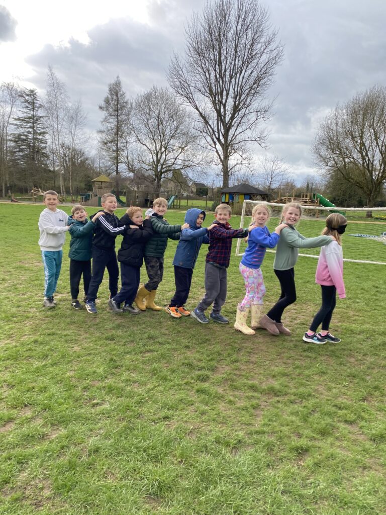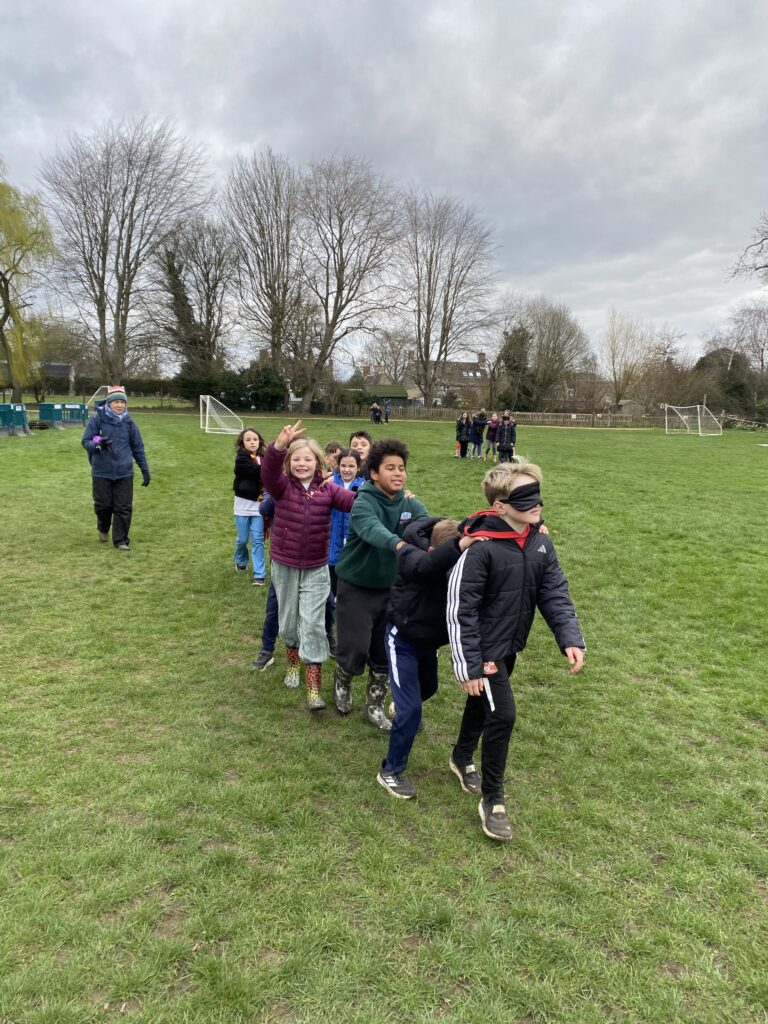 The children had a fantastic time in forest school using blindfolds. They had to guide one another to different points in the playground using only their voices. They then had to work as a team, ensuring no-one was left behind.