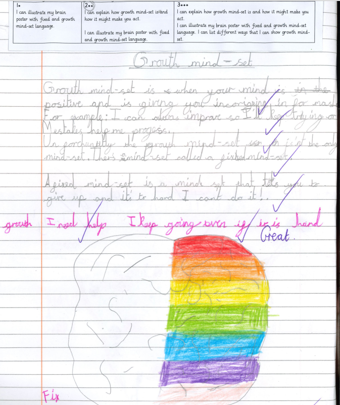 Class 5 started the year thinking about the quote, ‘Be transformed by the renewing of your mind.’ from the Bible. We read the book ‘The Dot’ and linked this to how we grow as learners. We thought about how Vashti struggled at first but with the help of her teacher she persevered and then shone! This made us think about how we grow as learners. We explored a fixed and growth mindset. Have a look at our work on learning mindsets.