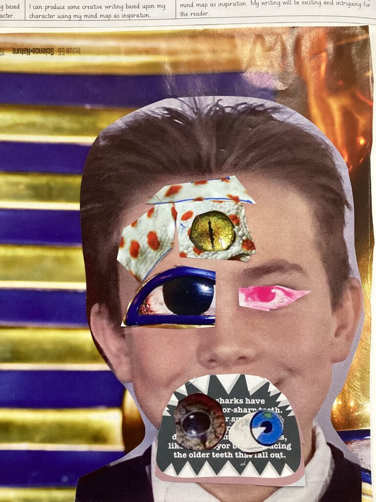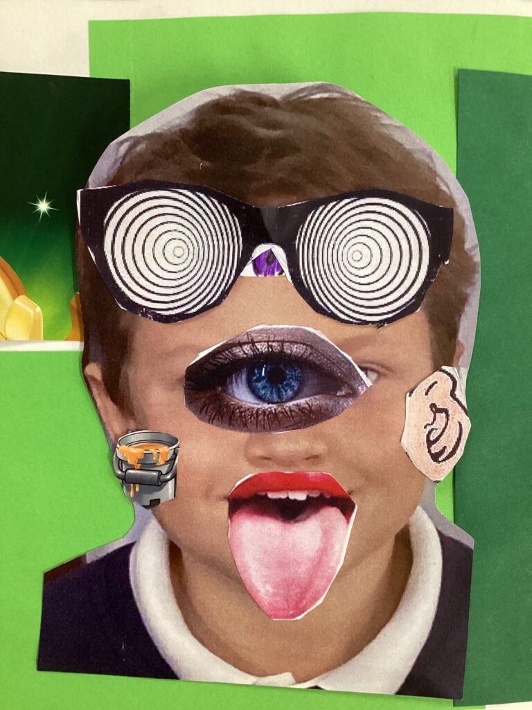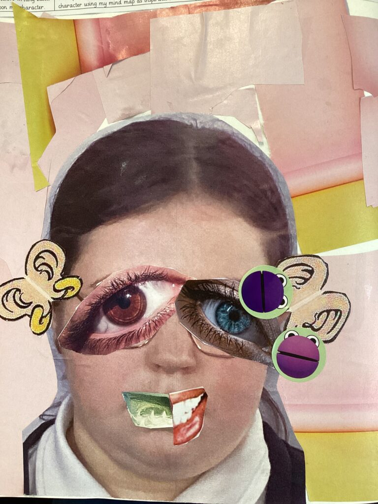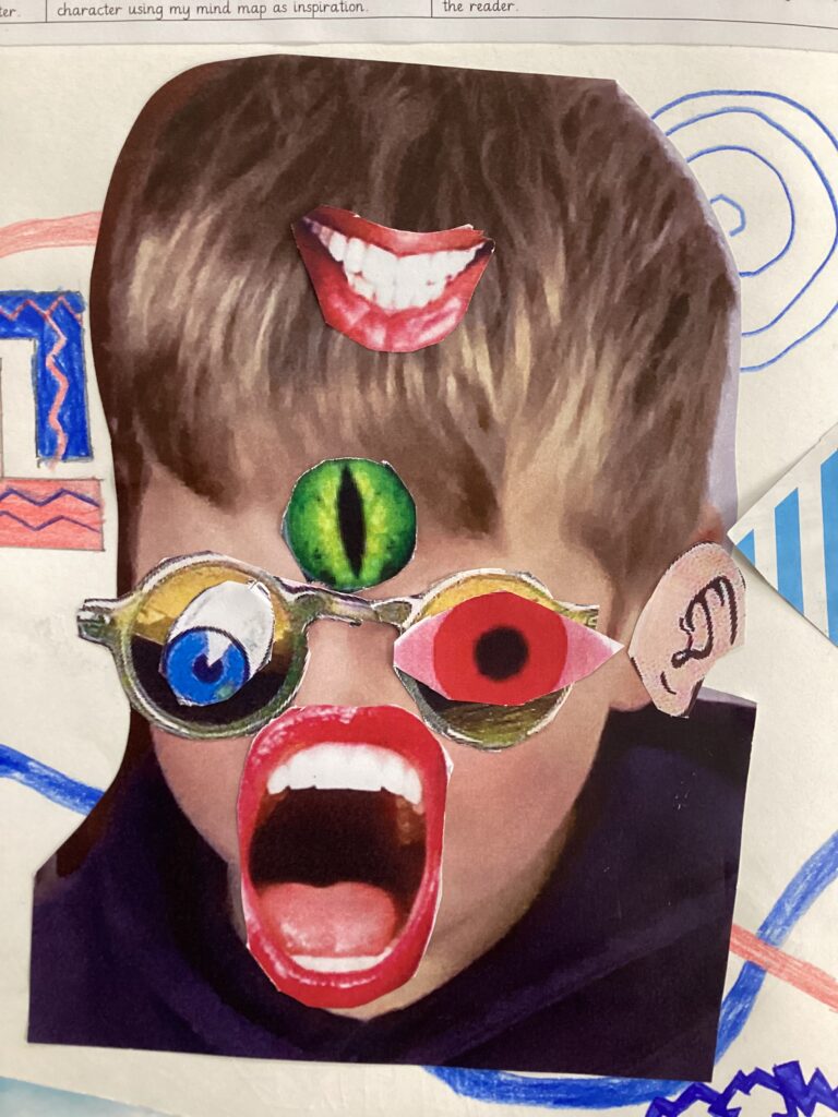 In art we have been looking at an art movement known as Surrealism. Surrealism is when art shows strange unreal scenes. It was first thought of after World War 1. Have a look at our Surrealism artwork. We have created strange and improbable faces.