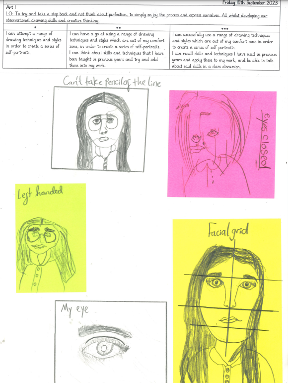 Class 6 started this academic year with two brilliant art days with Mrs Dyminski. We practiced a range of techniques involving how to draw self-portraits. We also worked on our tonal layering skills and researched Chuck Close. Have a look at our artwork below: