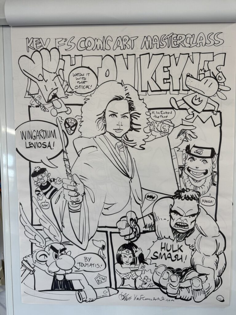 Class 6 took part in an engaging and interactive comic book workshop with comic book artist Kev F Sutherland this term. He gave us some top tips for drawing comic book style characters and even drew caricatures of us all! We collectively worked together to make our own class comic…PIG!