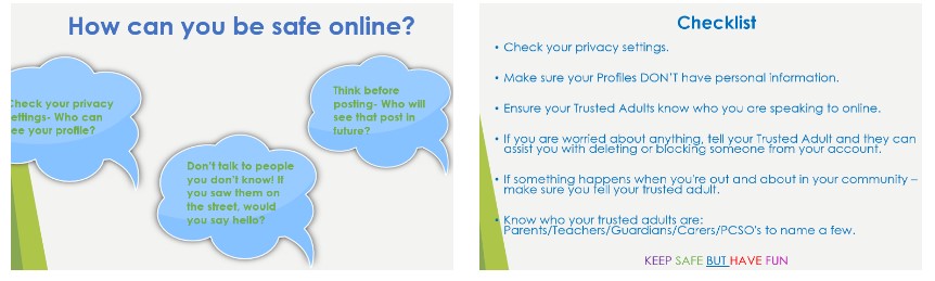 The children found the sessions really interesting and enjoyed listening to a catchy song which reinforced online safety rules. From the session, the key message was to not to talk to strangers online and to keep your personal information to yourself and report anything to a trusted adult when appropriate. We also learnt about how we can use childnet.com to block strangers online. Finally, the children enjoyed asking questions at the end about online safety and cyberbullying.