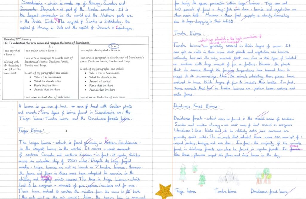In Geography, we have been learning all about Scandinavia – the countries that it is made up of and its climate. We have researched and written about the different biomes that can be found there as well as human and physical geographical features across Scandinavia. Have a look at some of our work below: