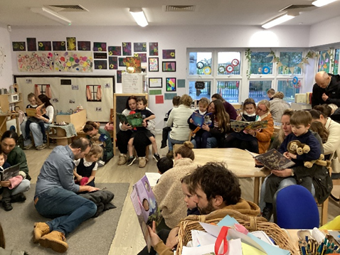 The following week we enjoyed Class R’s first bedtime story session. Children came back to school as it was getting dark to listen to stories and have hot chocolate and cookies by the fireside. Our favourite teddy bears came too. Not only did we listen to stories read by the teachers but we also had the chance to share books with our parents.